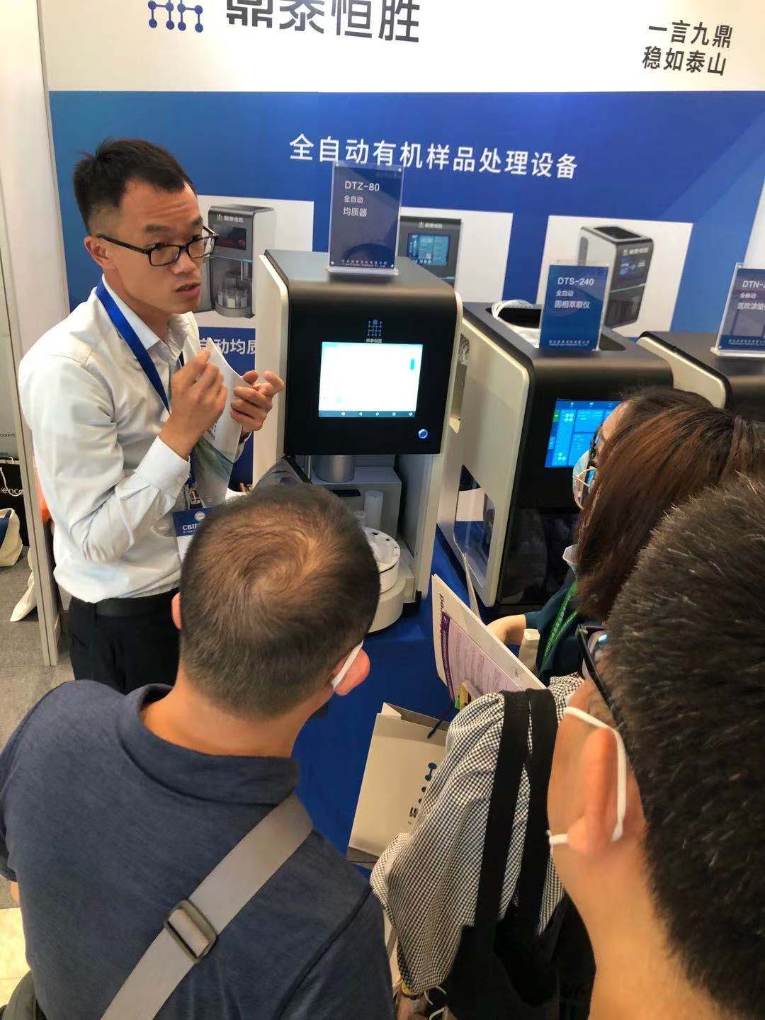 湖北鼎泰高科有限公司作為受邀參加本屆論壇的企業,在本次論壇帶來了公司旗下自主研發品牌“鼎泰恒勝”牌的三款有機樣品前處理設備參展,包括DTZ-80全自動均質器、DTS-240全自動固相萃取儀和DTN-240全自動多通道濃縮儀。前處理產品實現全自動化可大大縮短實驗人員的精力和實驗周期。展臺上吸引了眾多觀眾駐足。
